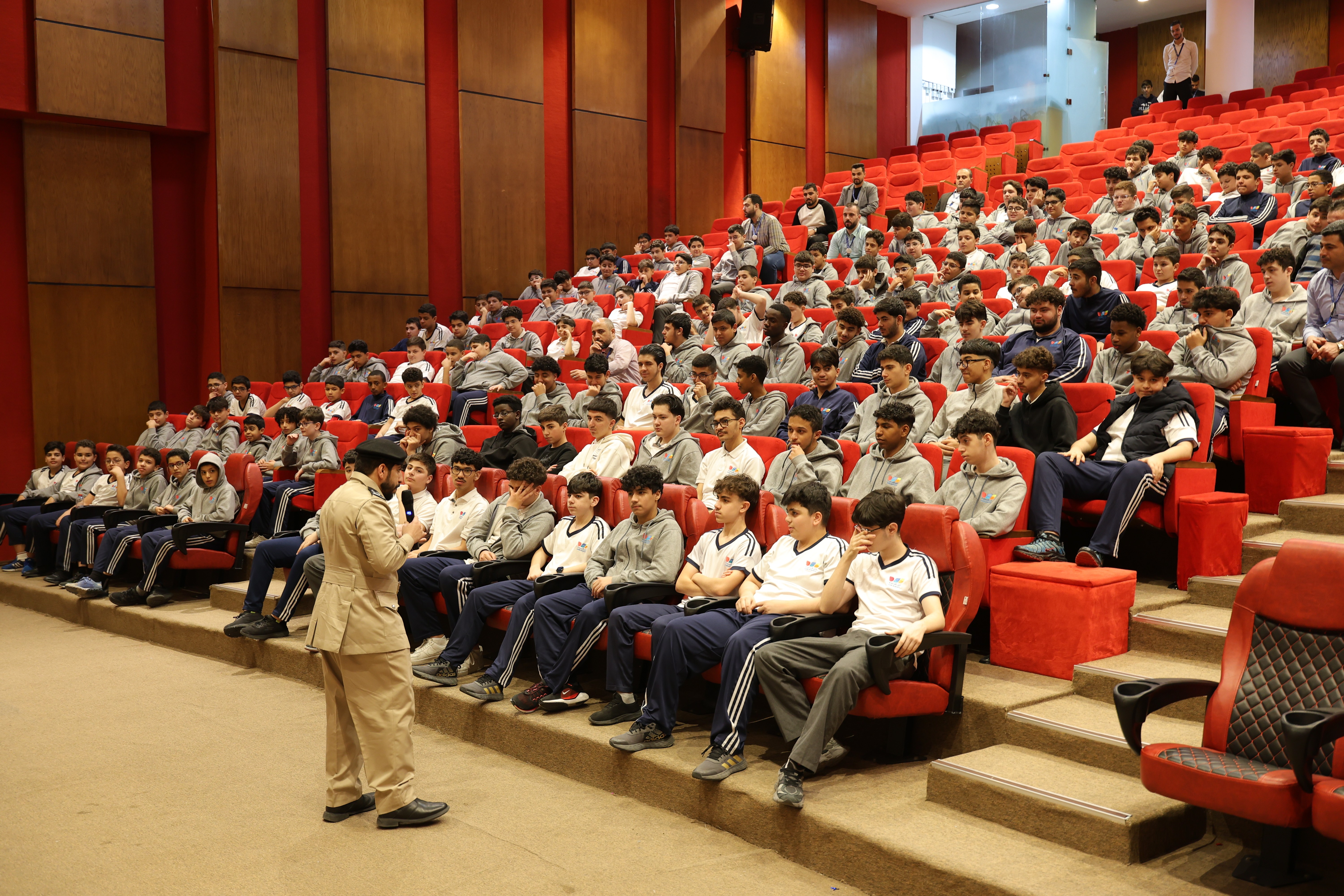 منصة لإبراز مواهب الطلاب في التمثيل والإلقاء والعروض، مجهّز بأنظمة صوت وإضاءة حديثة لإثراء التجربة التعليمية والفنية.